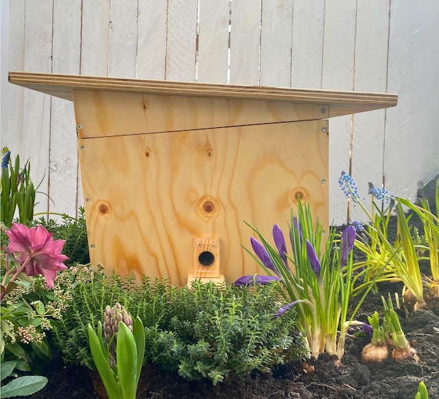 Sofort einsetzbar: Der Hummelkasten ist fertig montiert und wird mit Innenkarton und Nistmaterial geliefert.Du musst nur noch einen geeigneten Platz im Garten finden.